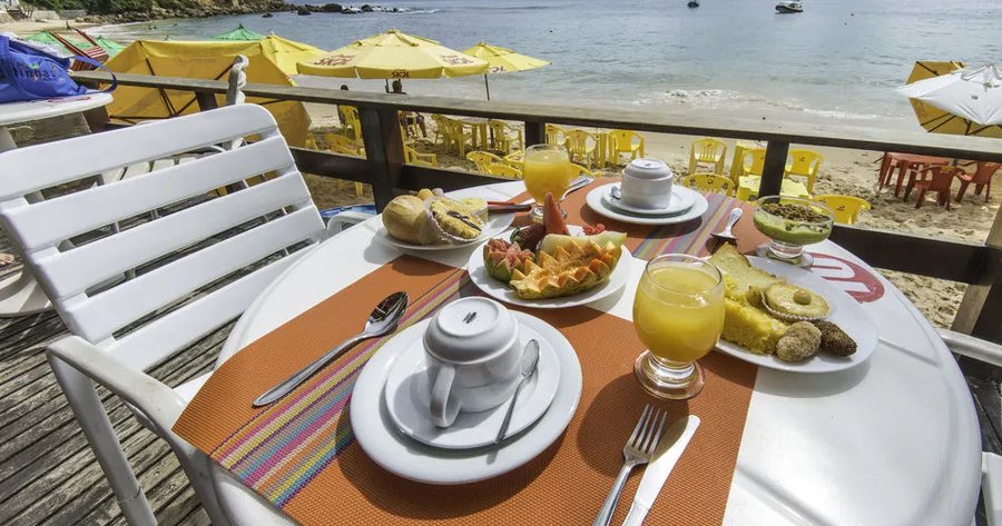 Iniciar o dia com um cardápio completo e vista privilegiada do amanhecer na Primeira Praia é o que você terá aqui na Porto dos Milagres.