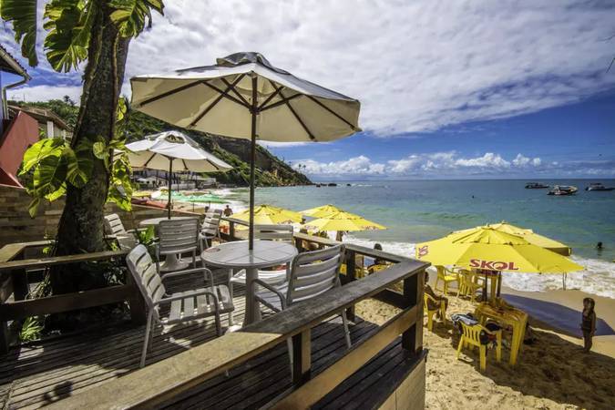 Contamos com deck e uma estrutura de frente praia com mesas, cadeiras e guarda-sóis para que nossos hóspedes possam curtir, com muita praticidade e comodidade, todos os dias no paraíso!